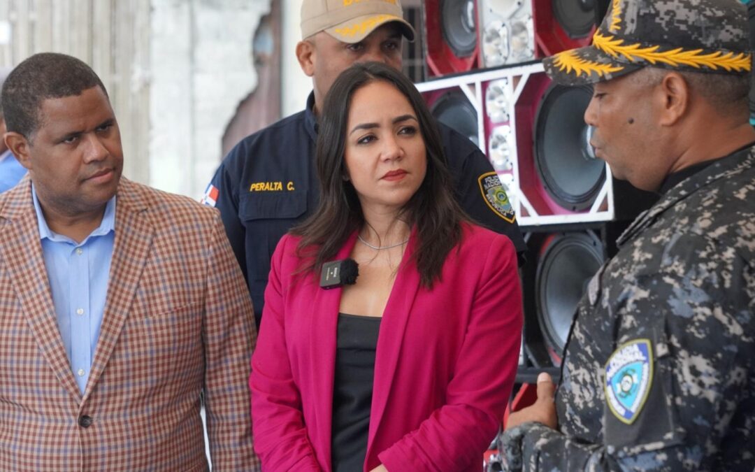 La ministra de Interior y Policía, Faride Raful, entregó a la Procuraduría Especializada de Medio Ambiente en Santo Domingo Oeste 225 bocinas, incautadas en espacios públicos y centros de expendios de bebidas alcohólicas, dónde también decomisaron 205 cámaras de videovigilancia y más de 5,000 mil armas blancas, durante los Operativos Garantía de Paz.