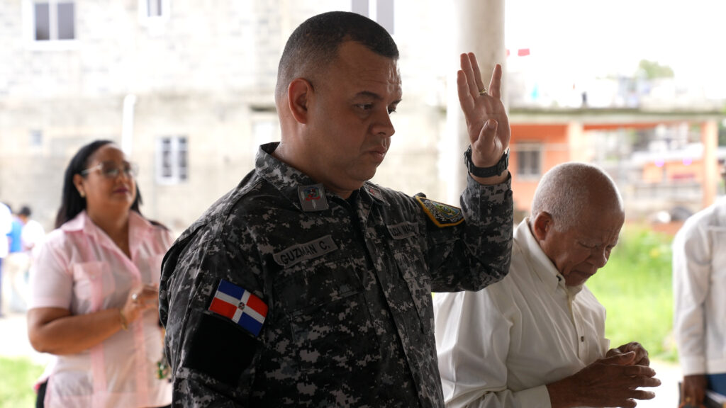 Agentes de la Policía Comunitaria de Los Alcarrizos participaron en la presentación del “Desayuno Espiritual”, una iniciativa que brinda apoyo espiritual y emocional a los uniformados. El acto, organizado por el Ministerio de Interior y Policía,  líderes religiosos y comunitarios, genera un espacio de reflexión y conexión entre los agentes y la sociedad a la que sirven.