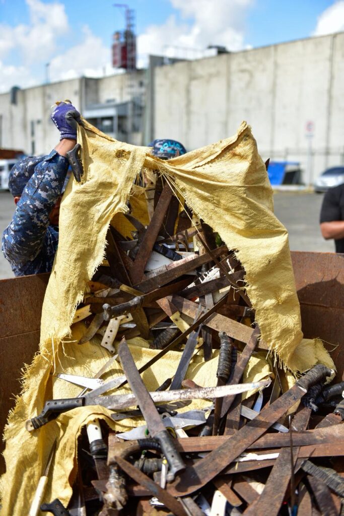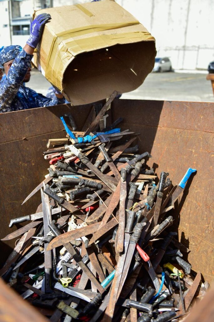 Durante la jornada fueron desintegradas 2,268 armas de fuego entre revólveres, pistolas, escopetas, rifles y artefactos de fabricación casera, así como 12,431 armas blancas, incluyendo cuchillos, machetes y puñales.