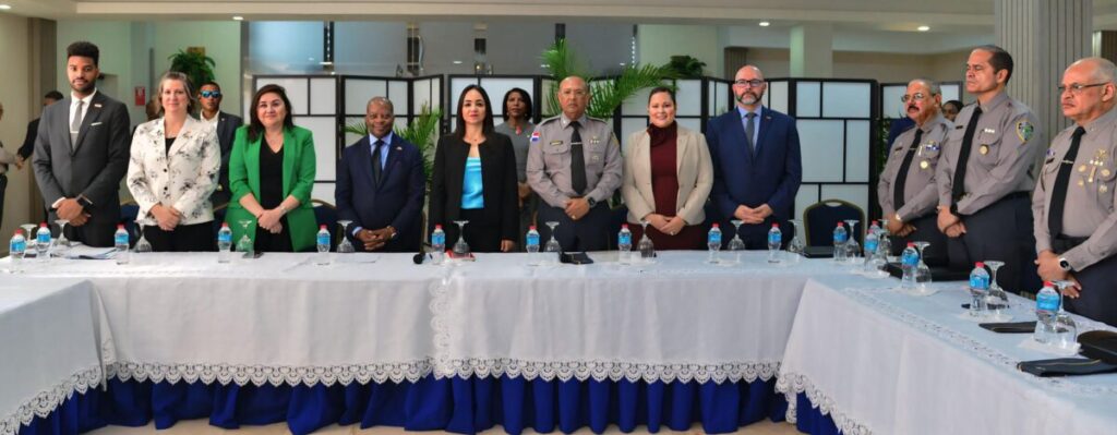 En el encuentro participaron la directora de INL, Rebeca Márquez; Patricia Aguilera, encargada de Negocios; Luis Ernesto García Hernández, comisionado para la reforma de la Policía Nacional, junto a otras autoridades del ámbito de seguridad.