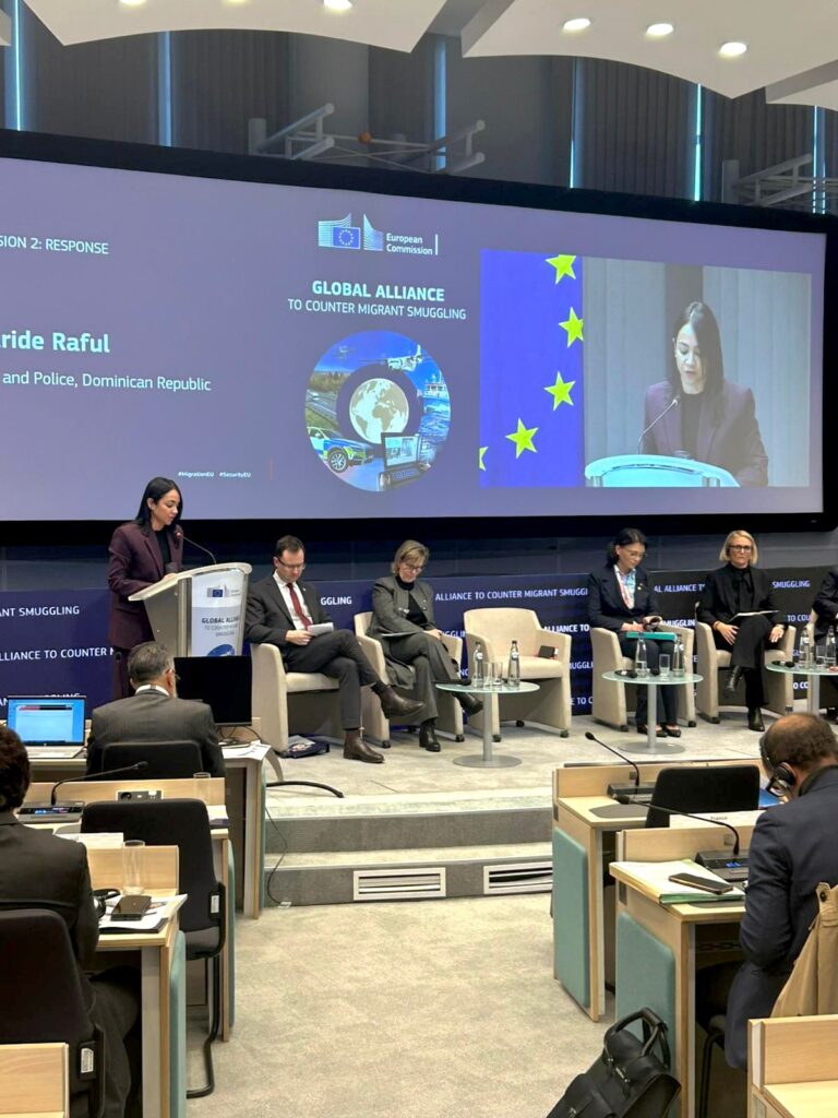 Bruselas, Bélgica. — La ministra de Interior y Policía de la República Dominicana, Faride Raful, participó hoy en la Conferencia Internacional de Alto Nivel de la Alianza Global para Contrarrestar el Tráfico Ilícito de Migrantes, convocada por la Comisión Europea.